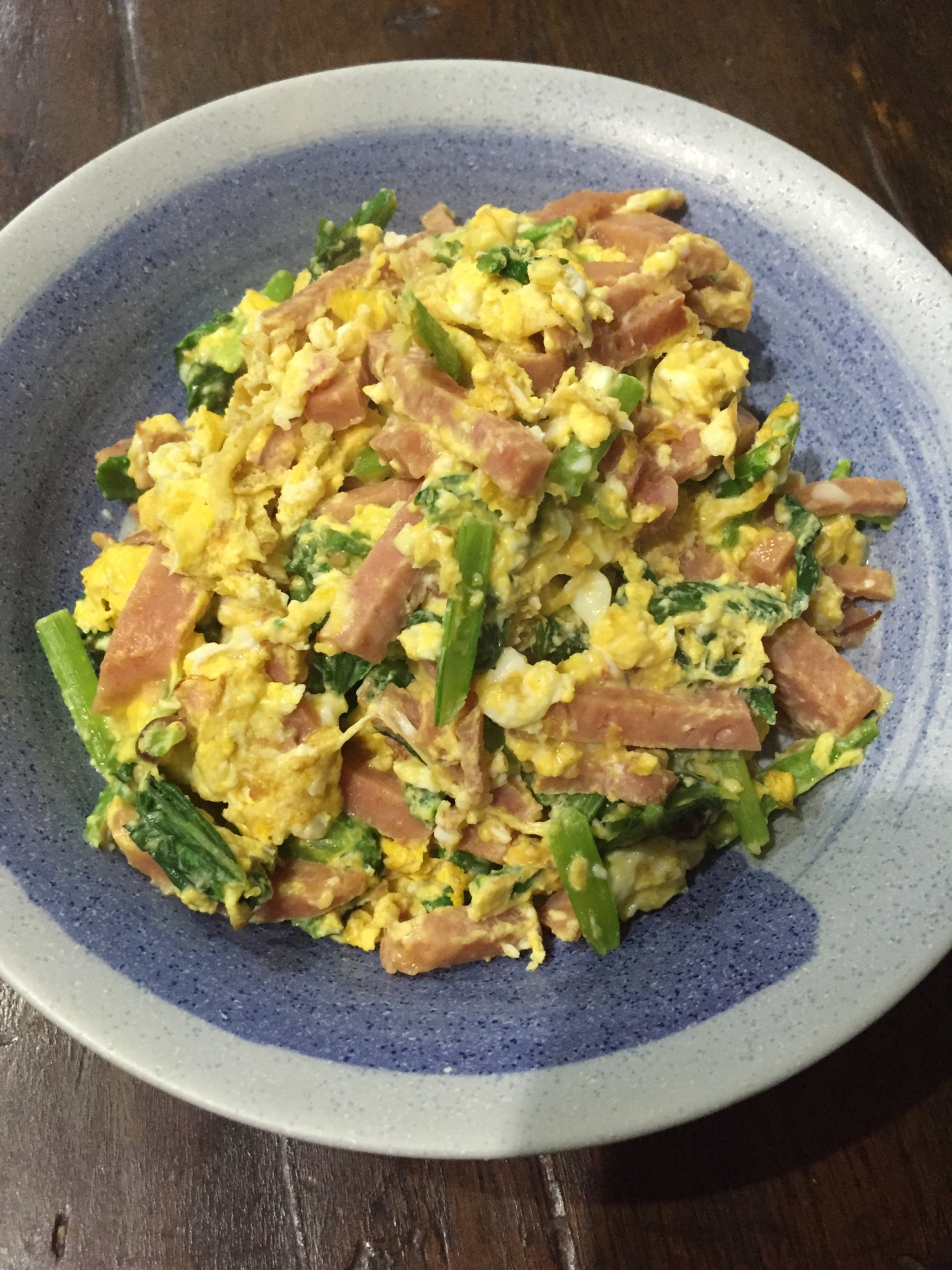 小松菜とスパム 入り卵の炒め物 レシピ 作り方 By 4045g 楽天レシピ